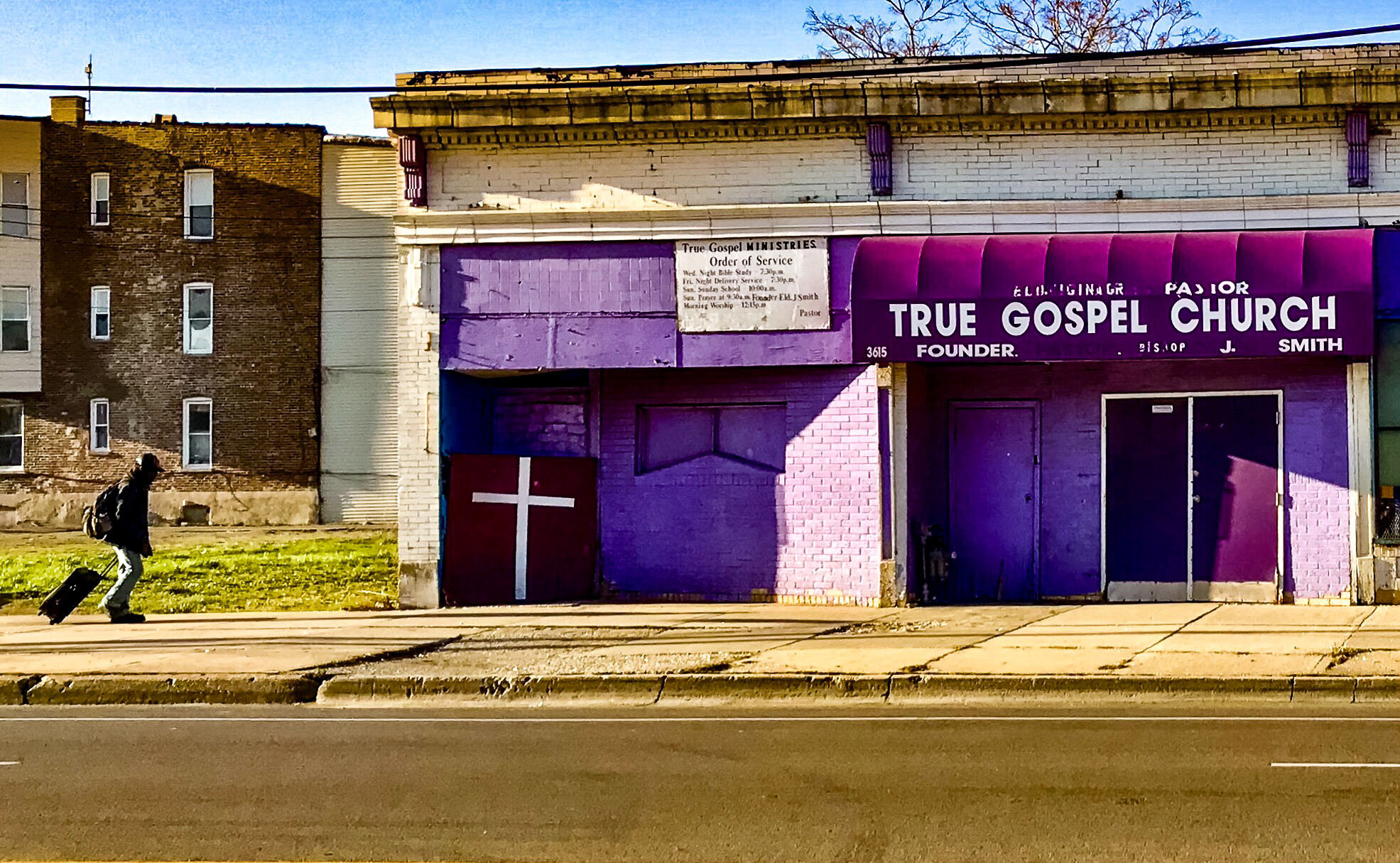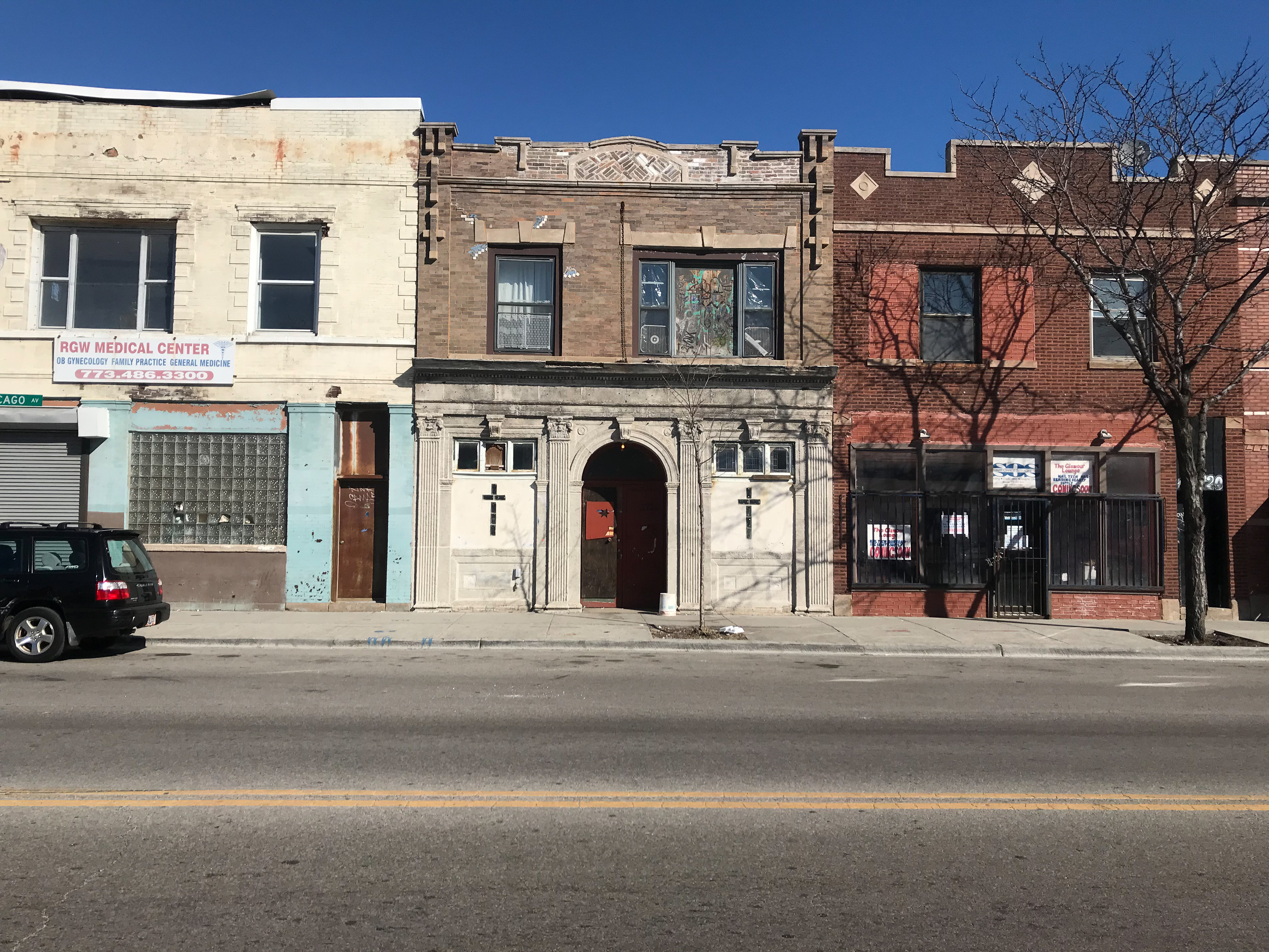 Chicago, Austin neighborhood, Spring 2018. Buildings re-purposed as houses of worship and other structures with spiritual messages.